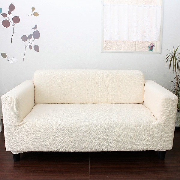 ソファーの形状そのままでぴったりとフィットします!縦方向にはあまり伸びない生地なので、座った時にずれにくくなっています。