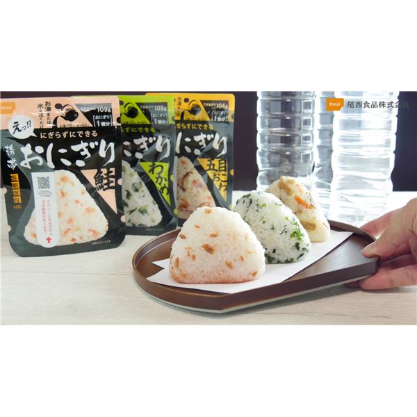 ○お湯または水を注ぐだけで具材の旨味がギュッとおいしい三角形のおにぎりが出来上がります