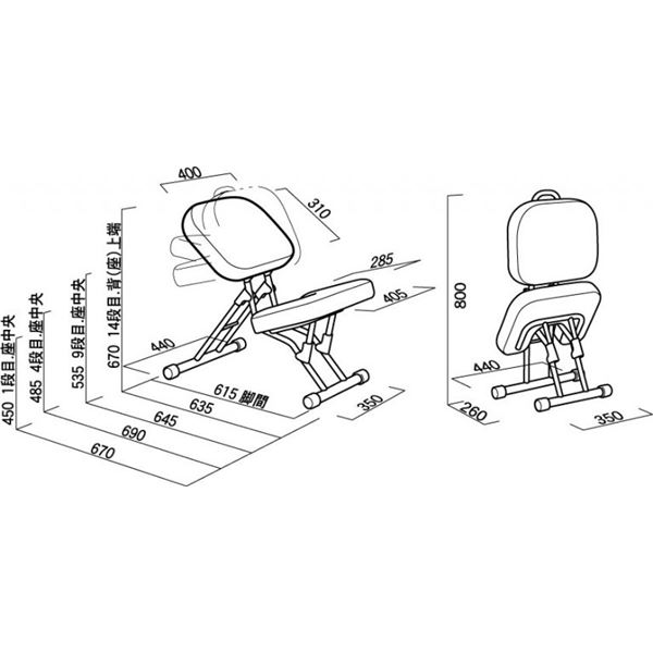 折りたたみ時:W440×D260×H800