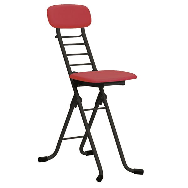 折りたたみ椅子 4脚セット レッド 日本製 高さ6段調節 スチールパイプ 代引不可
