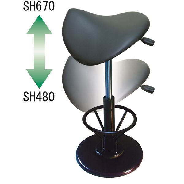 ●鞍型形状の座面は脚を広げて座るので重心が安定します。
