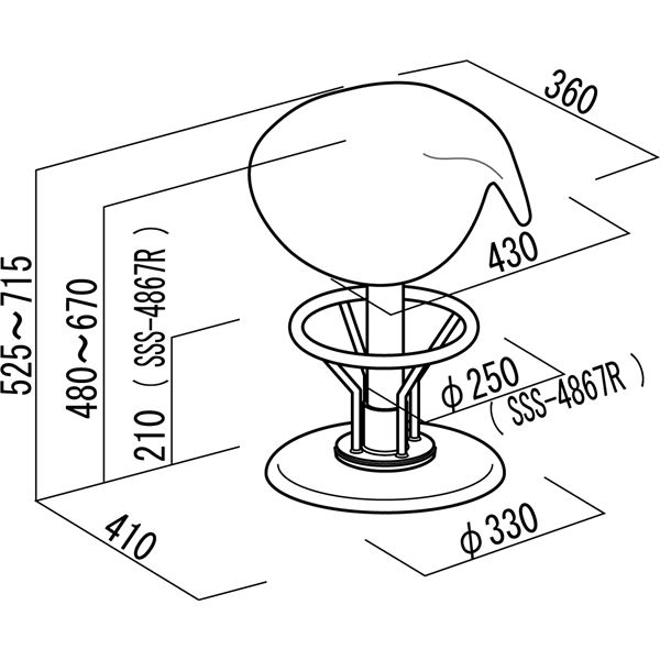 本 体:W430×D410×H525~715(SH480~670mm)mm