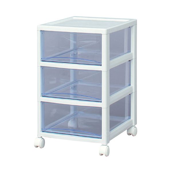 中身が確認しやすいスーパークリアチェスト/3段。引出しの材質にスチロールを採用しているため透明度が高く、中身が確認しやすいクリアタイプのチェストです。引出しが飛び出しにくい簡易ロック構造です。