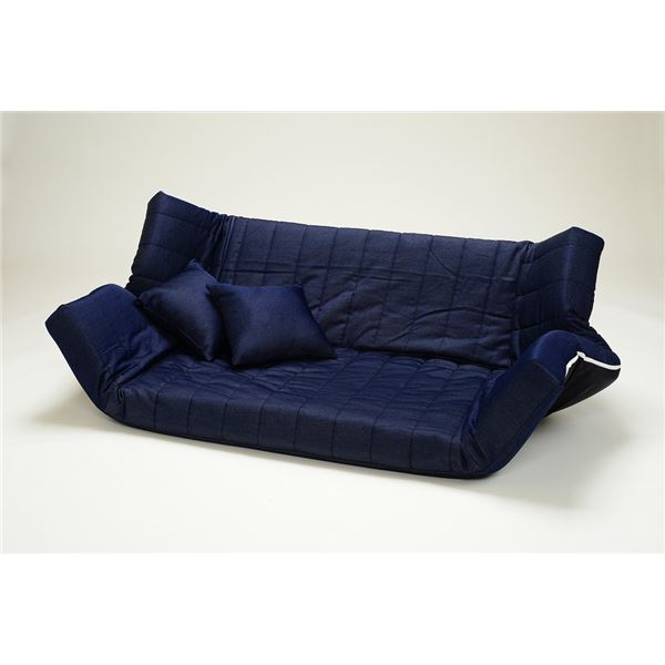 低反発 リクライニングソファー/ローソファー デニム生地 インディゴ 肘付き 同色クッション2個付き 日本製 代引不可