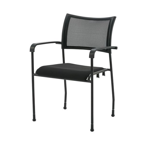 背メッシュ・モノトーンのミーティングチェア/固定脚タイプ/肘付ブラック。背メッシュ部分は通気性が良いので、ムレずにさわやかな座り心地です。ミーティングスペースをシックに演出します。4脚までスタッキングできて省スペース収納が可能。