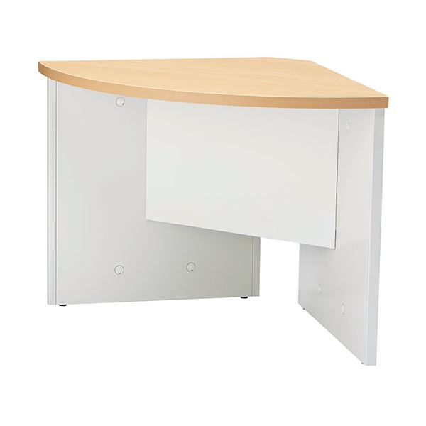 シンプルなデザインのシステムカウンター「CSカウンターII」/コーナーカウンター。ローカウンタータイプのコーナーカウンター。天板カラーはナチュラル、本体はオフィスになじみやすいネオホワイトです。同シリーズのローカウンターとの組合せで、機能的で明るい来客空間を実現。