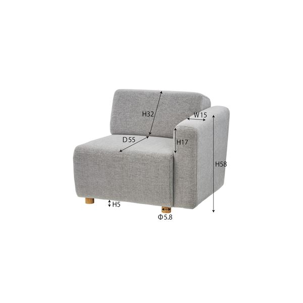 キューブ 片肘(向かって右肘)ソファ グレー SS-118GYD