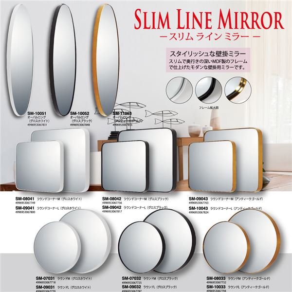 ●スリムで奥行きの深いMDF製のフレームで仕上げた、モダンでスタイリッシュな壁掛用ミラーです。