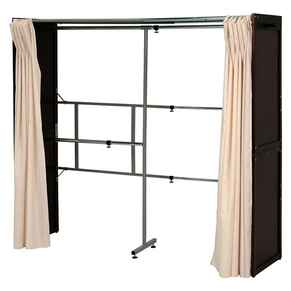 伸縮式 クローゼット/衣類収納 ~195cm 高さ170cm 木製 スチール 洗えるカーテン付き 代引不可
