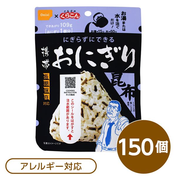 尾西食品 携帯おにぎり/保存食 こんぶ 150個 長期保存 軽量 100%国産米使用 日本製 非常食 企業備蓄 防災用品 代引不可