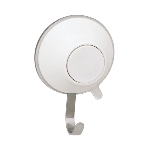 ボタンを押すだけで、簡単に取り付けできるプッシュ式吸盤のフック。