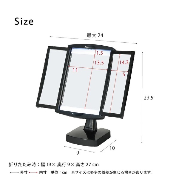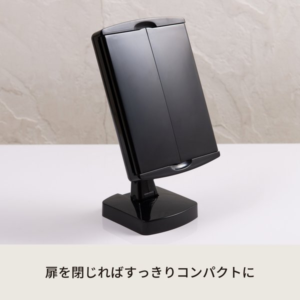 12個セット キレイミラー(/黒) ED/ライト付/2WAY/三面鏡/拡大鏡/卓上ミラー/手鏡/メイク/化粧/スタンド/折りたたみ/回転式/光る/韓国インテリア/業務用/NK-2710