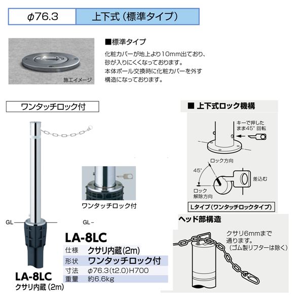 ■タイプ:リフター上下式 サイズ:φ76.3(t2.0)H700