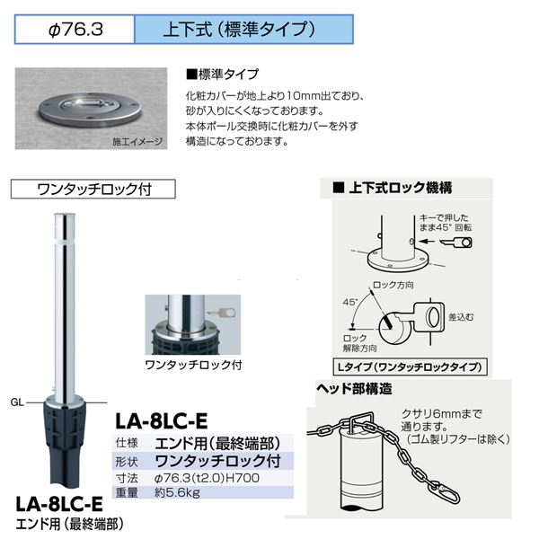 ■タイプ:リフター上下式 サイズ:φ76.3(t2.0)H700