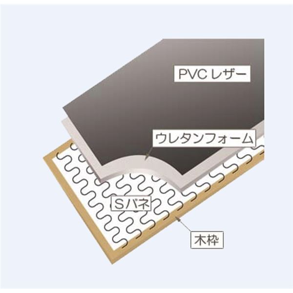 しっかりとした座り心地で、座面はちょっと固めです。お手入れ簡単な合成皮革を使用しています。