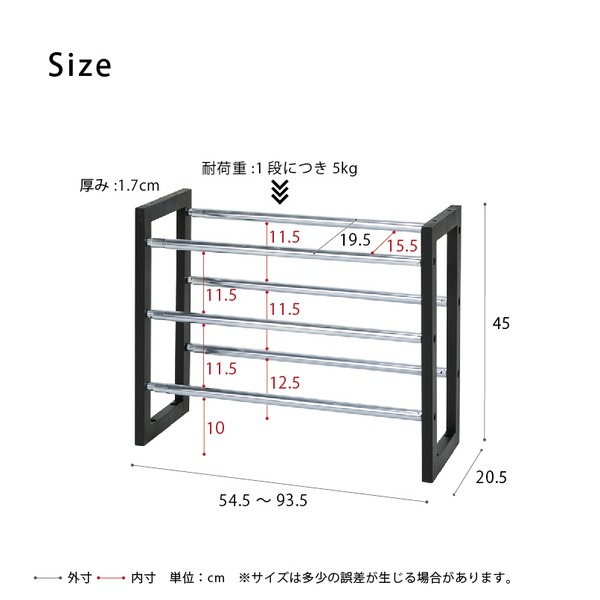 スペースや収納量に合わせて伸縮自在なシューズラック