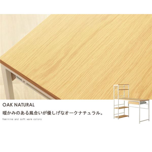 収納ラック付きパソコンデスク/ワークデスク オーク 引出し付き 組立品 代引不可