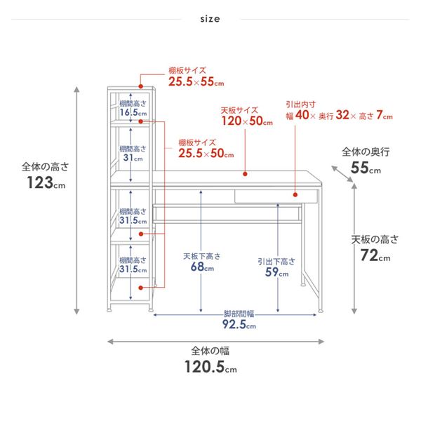天板:幅120×奥行50×高さ72cm