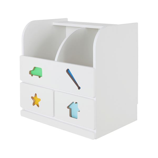 *上部のオープン部は大きなおもちゃ、下部の引き出しには小さなおもちゃを収納。