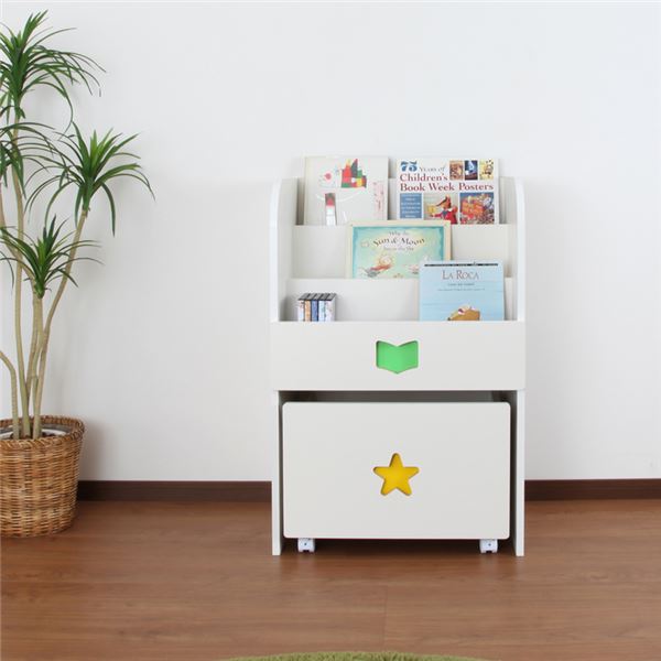 子供用 収納棚 男の子用 日本製 引出し キャスター 『おかたづけしたくなるワゴン付きマガジンラック』 完成品 代引不可