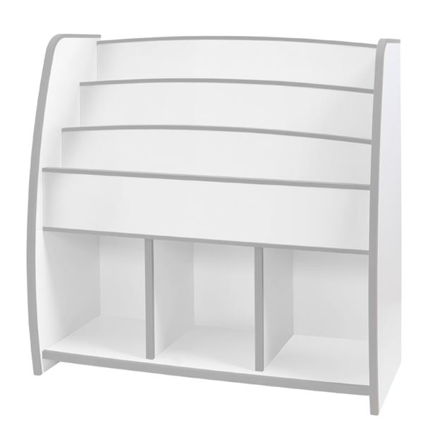 *マガジンラックは、本の表紙が見えるように収納すので自発的に本を読むようになります。また表紙を見せてゆとりがある状態で収納できるので、お子様にも本が取り出しやすいです。下段は図鑑等の大型本もおけるのでいろんな本に興味を持ち始めたお子様におすすめです。