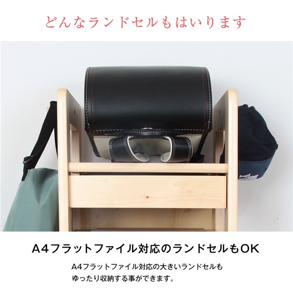 ランドセルラック/子供部屋収納 木製 フック付き 『天然木ジュニアシリーズ』 組立品 代引不可