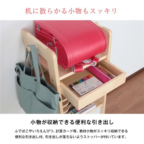 上部は置くだけのランドセル収納箇所。筆箱等の小物の収納にも便利な引き出し付き。
