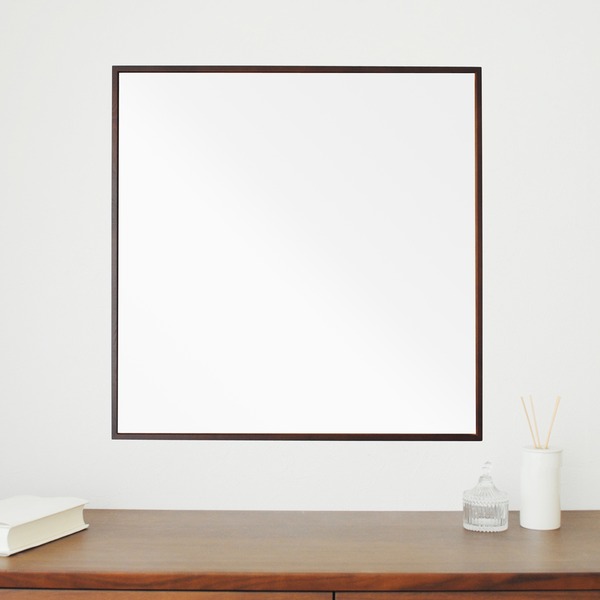 細枠正方形ウォールミラー(60) (ブラウン)