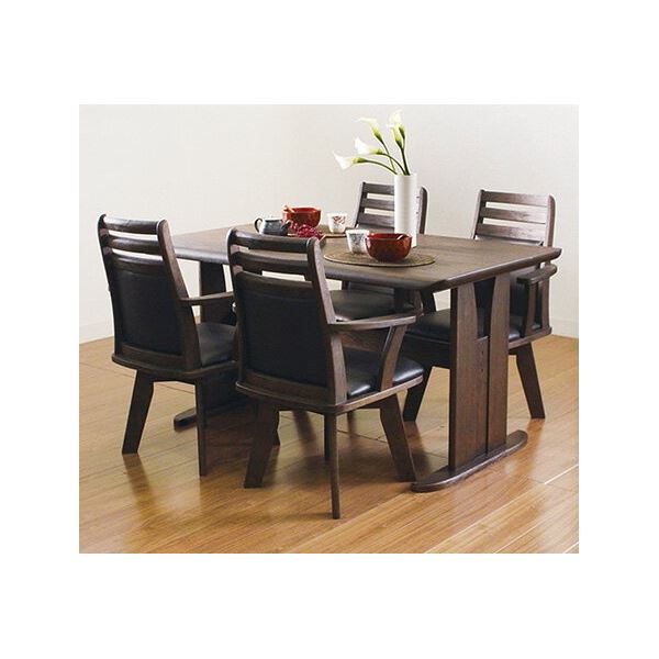 ダイニング 5点セット ダイニングテーブルセット 回転チェア テーブル 木製 ブラッシング加工 DBR 組立品 代引不可