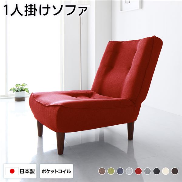 ハイバックソファー タスク生地 レッド 脚部 ソファ幅65cm 日本製 脚付き 代引不可