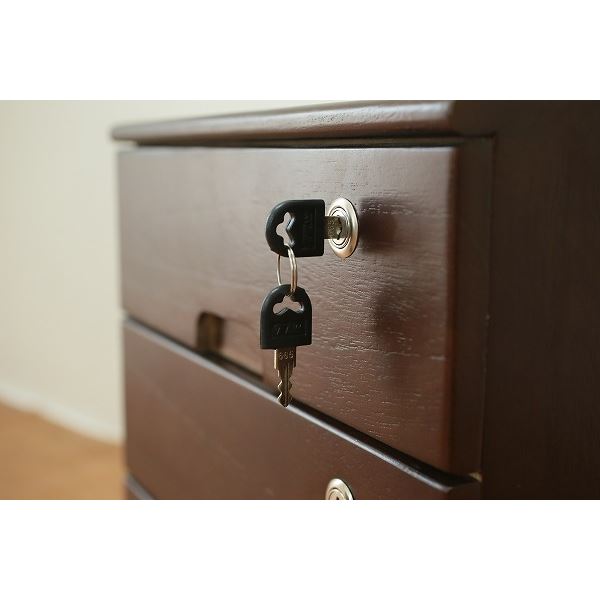 大事な印鑑や通帳年金手帳など大切な物をしまうのにぴったり。全段同じ鍵で開くから便利です。お客様など出入りするお部屋に最適です。隠しキャスター付なので移動も楽々!!お掃除もスムーズにできます。お色はブラウンとライトブラウンの2色展開になっておりますので、和室洋室どちらでも違和感なくお使い頂けます。リビングチェストとしては勿論、ベッドサイドにも最適です。