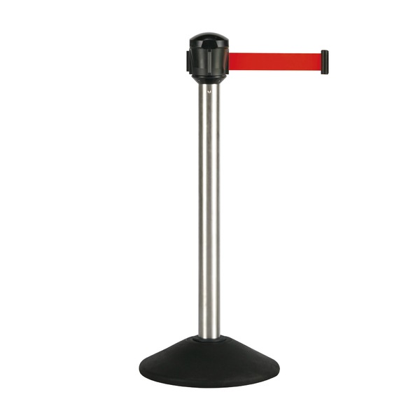 ベルトパーテーション AW 屋外対応 ナイロンベルト 3.6m ヘアライン ベルト赤 テラモト 案内 整列 誘導 仕切り 組立品