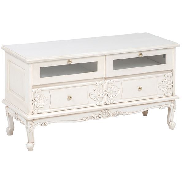 エレガントな彫刻とねこ脚、アンティーク風の上品なテレビ台。ビデオデッキなどの収納もバッチリ。
