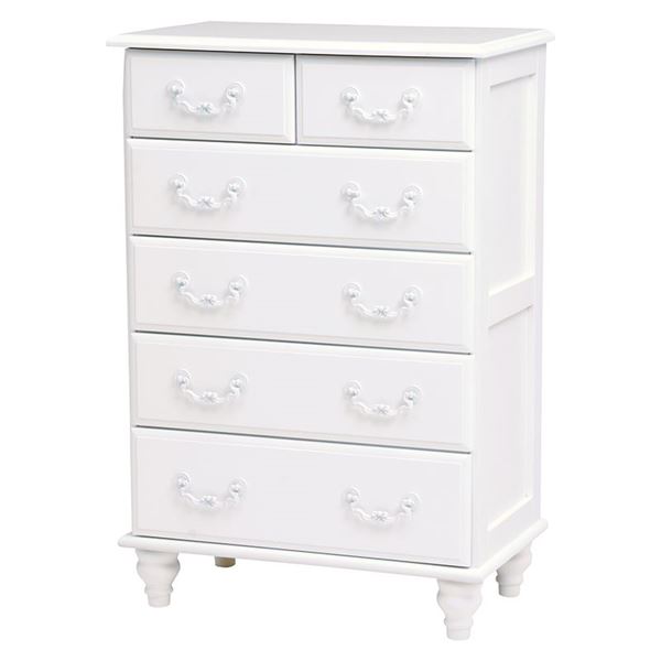 上品な白い取っ手のついた、シンプルながらも上質さを感じさせるチェスト。
