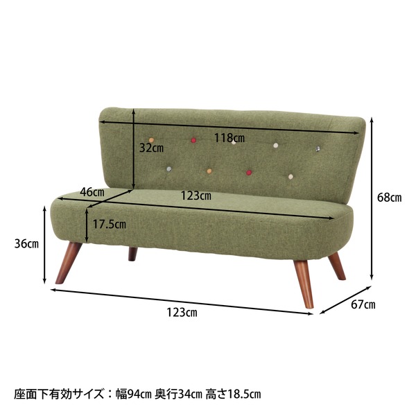 ソファー 幅123 奥行67 高さ68cm 木製 脚付き 組立品 リビング ダイニング 代引不可