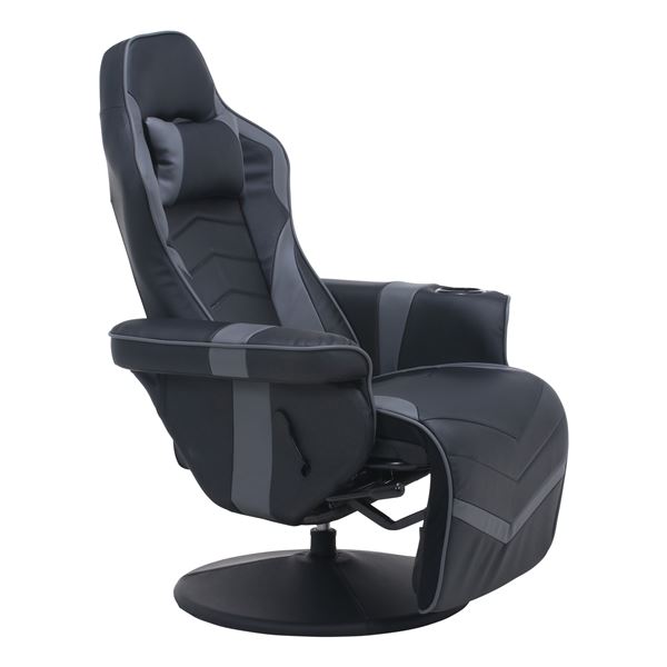 ゲーミングチェア リクライニングチェア 約幅84cm ブラック ドリンクホルダー 肘付き 合皮 組立品 代引不可