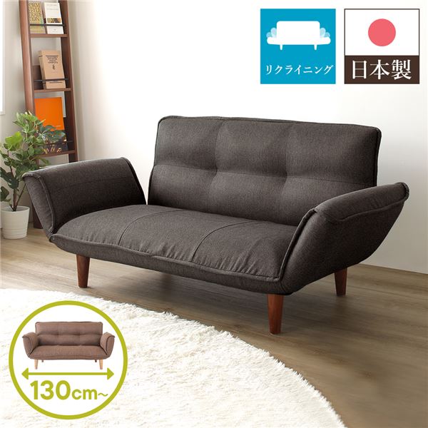 日本製 リクライニングソファー/ローソファー ダリアン生地 脚部:ブラウン 幅130cm 肘付き 脚付き 代引不可