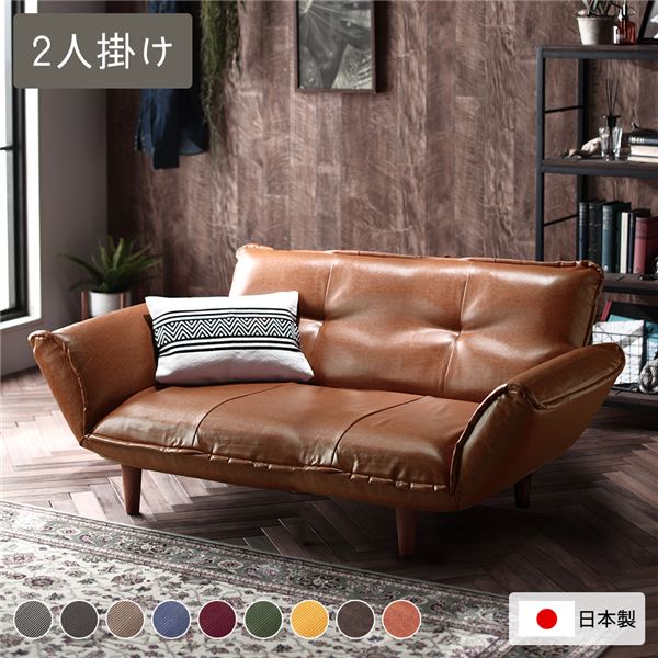 リクライニングソファ 2人掛 ヴィンテージPVC生地 ヴィンテージ 脚部 ブラウン 日本製 ローソファ 代引不可