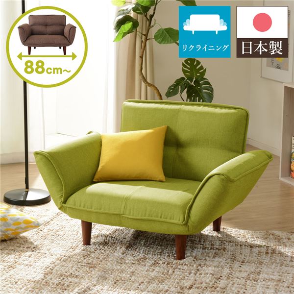 日本製 リクライニングソファー/ローソファー ダリアン生地 グリーン 脚部: 幅88cm 肘付き 脚付き 代引不可