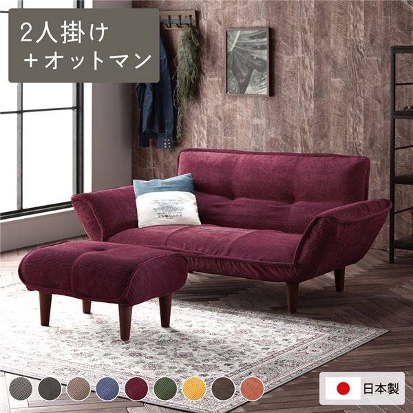 リクライニングソファ 2人掛 + コーデュロイ生地 脚部 ブラウン 日本製 ローソファ 代引不可