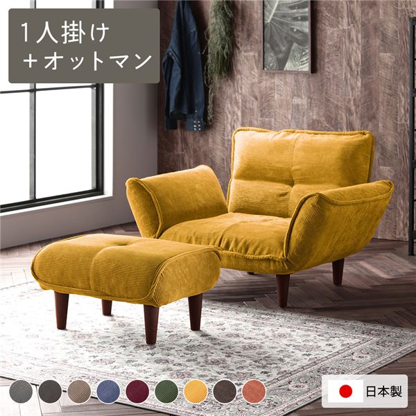 リクライニングソファ 1人掛 + コーデュロイ生地 イエロー 脚部 日本製 ローソファ 代引不可