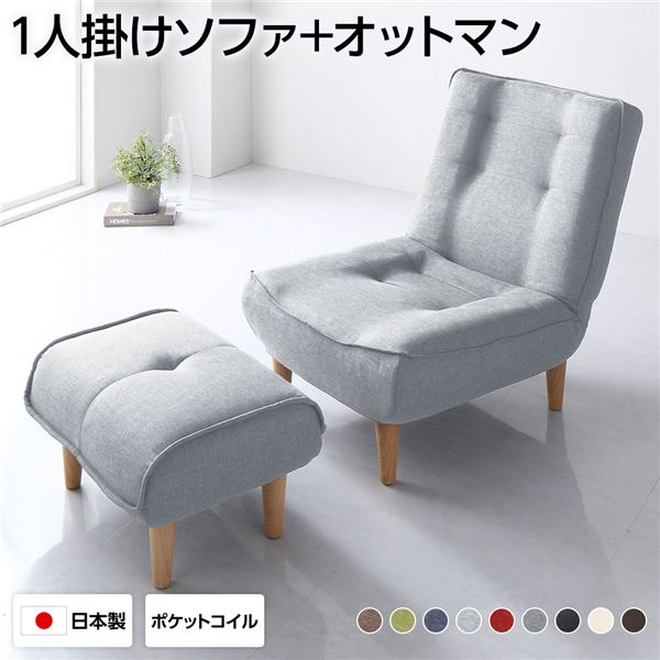 ハイバックソファー オットマン付き タスク生地 グレー 脚部 リクライニング 幅65cm 日本製 代引不可