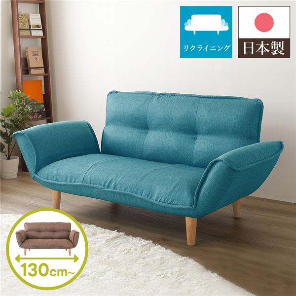 こちらは「日本製 リクライニングソファー/カウチソファー 【2人掛け タスク生地 ブルー】 脚部:ナチュラル 肘付き 脚付き」の商品ページです。