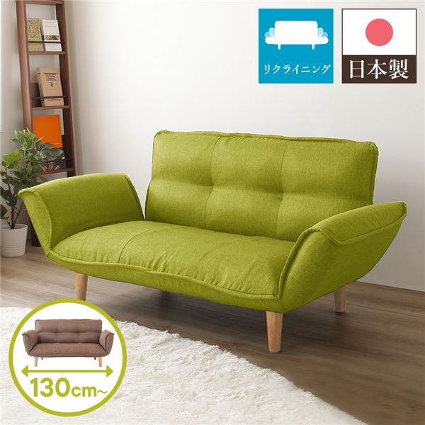 こちらは「日本製 リクライニングソファー/カウチソファー 【2人掛け ダリアン生地 グリーン】 脚部:ナチュラル 肘付き 脚付き」の商品ページです。