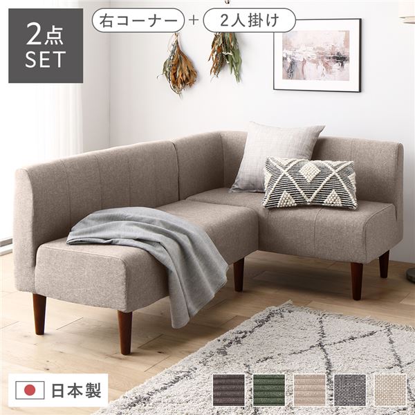 日本製 ダイニングソファ 2点セット 右コーナー+ ベージュ 脚 ポケットコイル ソファセット 代引不可