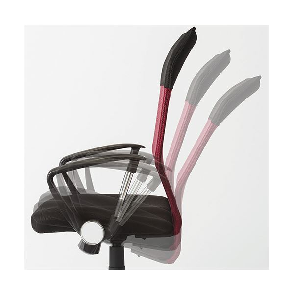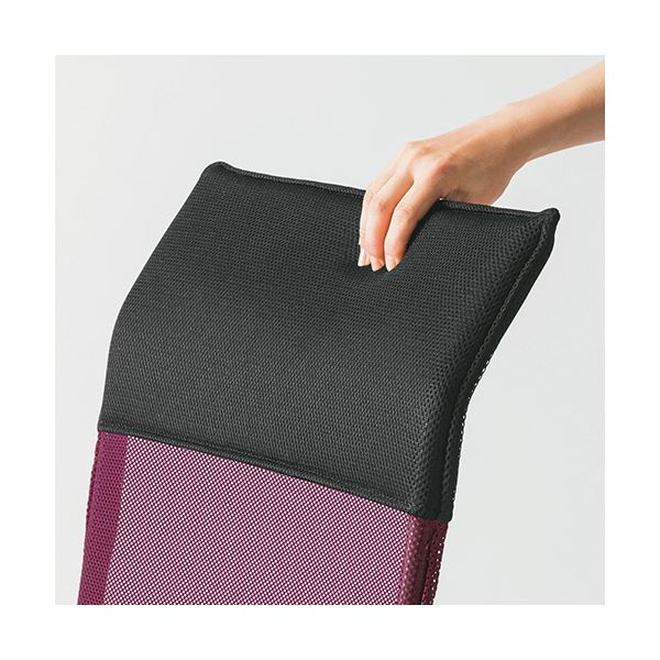 ●背もたれ上部はクッション内蔵で首アタリがやわらかいブラックのメッシュチェア。