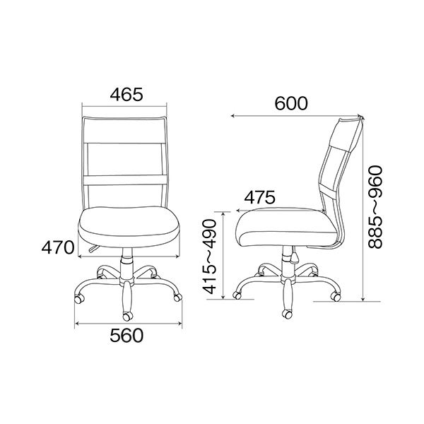 YAAZEN ミドルバック 爽快メッシュチェア 肘なし EMG-778M(WRD) 1脚 組立品