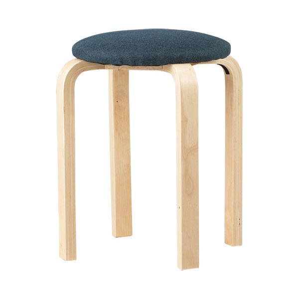 (まとめ)アスト 木製ラウンド クッション付 ネイビー 1脚 3セット