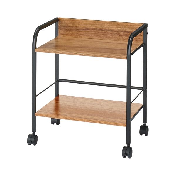 (まとめ)YAAZEN キャスター付リビングラック 2段 オーク/ YZCR-2(OAK/BK) 1台 組立品 3セット
