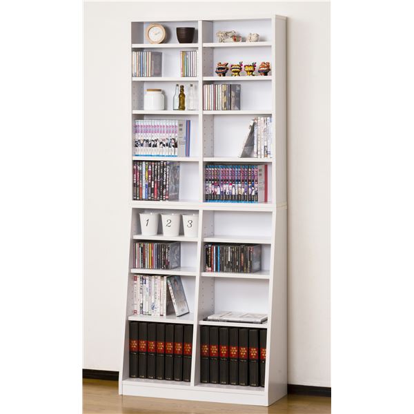 奥行が浅い上段はCDやDVD、文庫本などの収納に、奥行の深い下段は百科事典などを収納できます。棚板はすべて可動、収納物の高さに合わせて設置できるので、ムダがありません。背面化粧仕上げ。下部は斜めにカットされているので安定感があり、また上段・下段が独立しているので、別々にお使いいただくこともできます。
